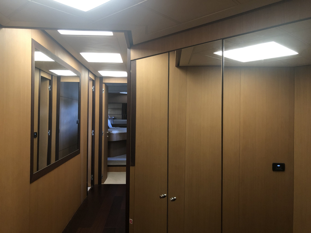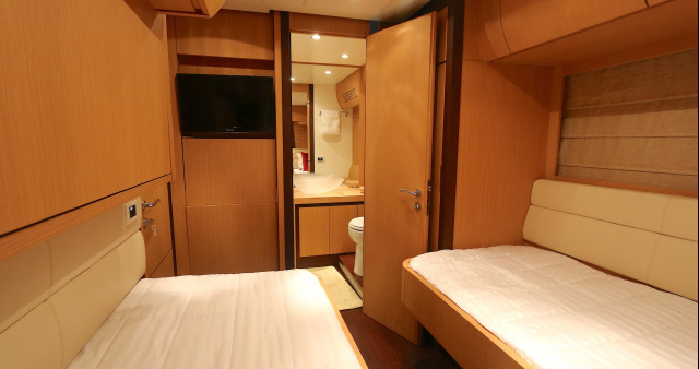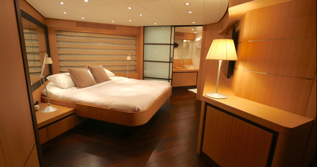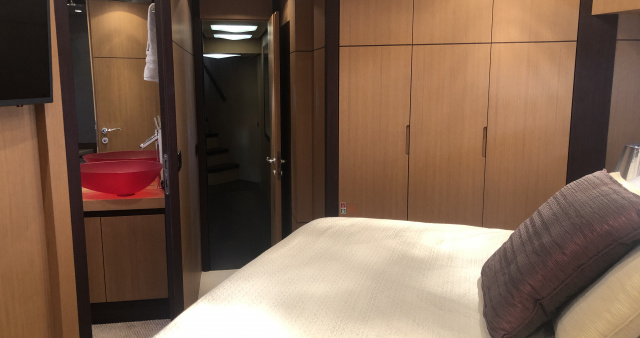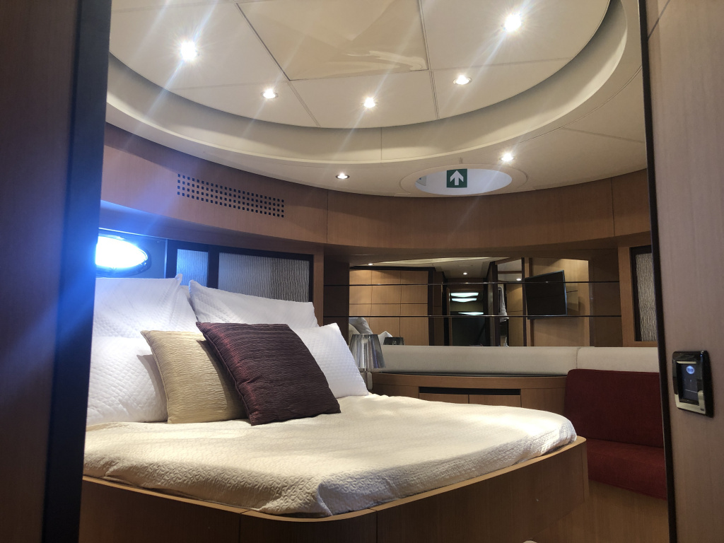 90 Pershing interior layout sleeps up to 8 guests in 4 staterooms, including a master suite, 1 VIP staterooms, and 2 twin cabins. She is also capable of carrying up to 4 crew on board to ensure a relaxed luxury yacht charter experience. Her impressive leisure and entertainment facilities make her the ideal charter yacht for socializing and entertaining with family and friends. She is the perfect combination of performance and luxury. This luxury yacht charter is available for rent in Miami and for trips to the Bahamas.